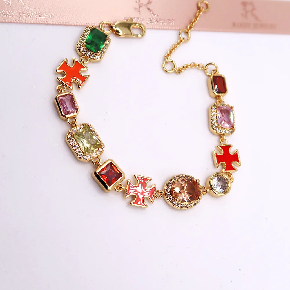 Multicolor Gemstone Crossed Bracelet